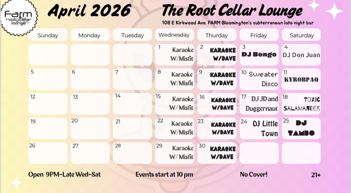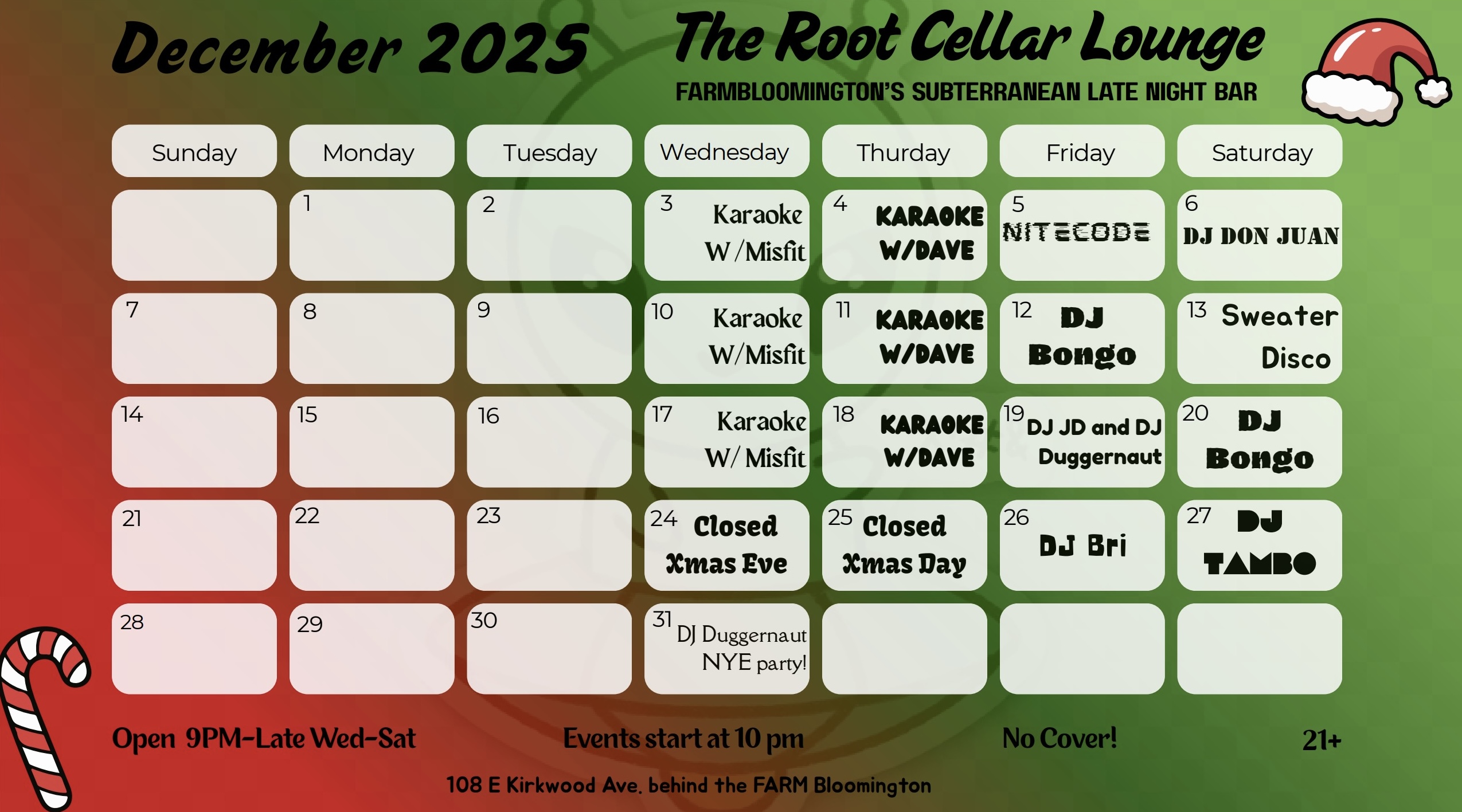The Root Cellar Lounge has several underground spaces available for private events: the Wine Cellar, Limestone Room, Parlor & Case Room. The entire space may also be rented for larger cocktail parties and events. From DJ Dance parties to Karaoke & more, the Root Cellar offers a wide variety of entertainment that is available for special events.